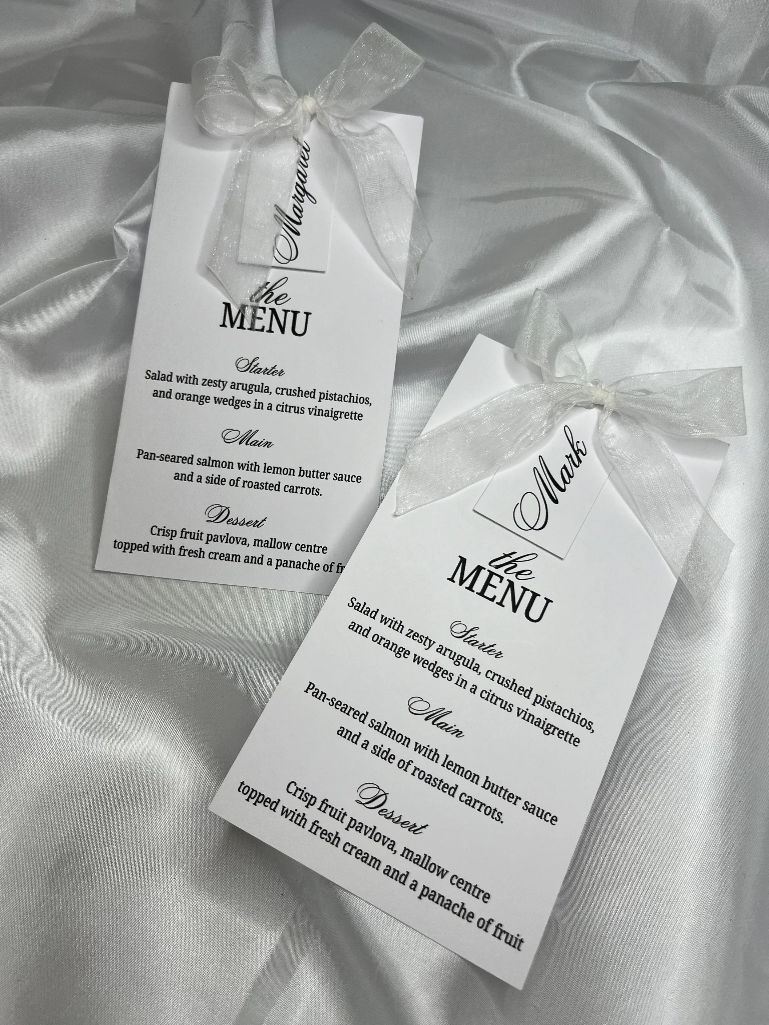 Our enchanting collection features captivating save-the-dates, elegant wedding day invitations, evening soiree invites, table names and numbers, personalised place settings, exquisite wedding menus, and meticulously crafted orders of service.